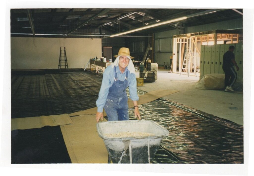 Bill Elmslie (dec); one of many who helped wheel all the gravel that makes up the floor in front of the target line.